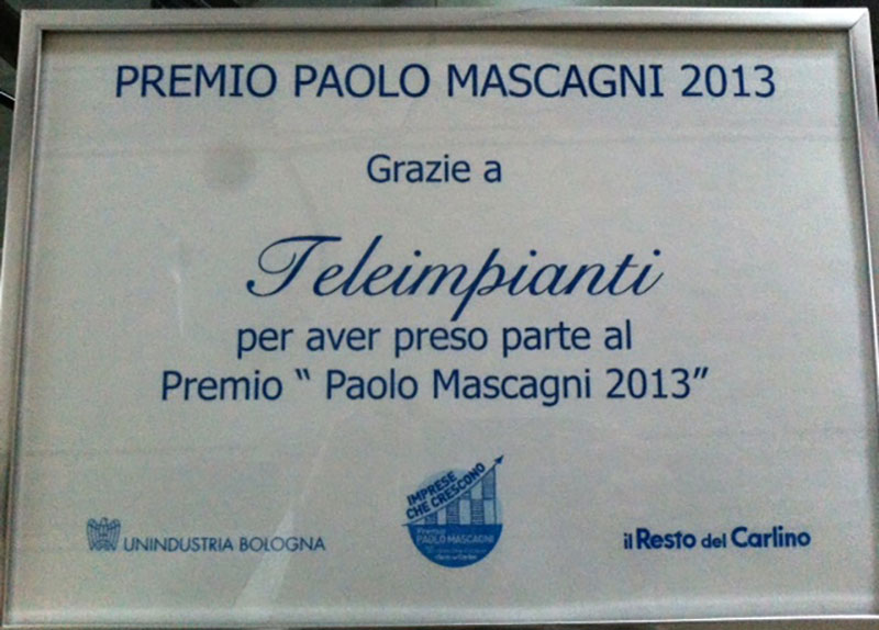 Teleimpianti è una delle 39 aziende di eccellenza del territorio che ha partecipato al Premio Paolo Mascagni 2013, nella cornice dell’Aula Marco Biagi nella sede del Resto del Carlino.